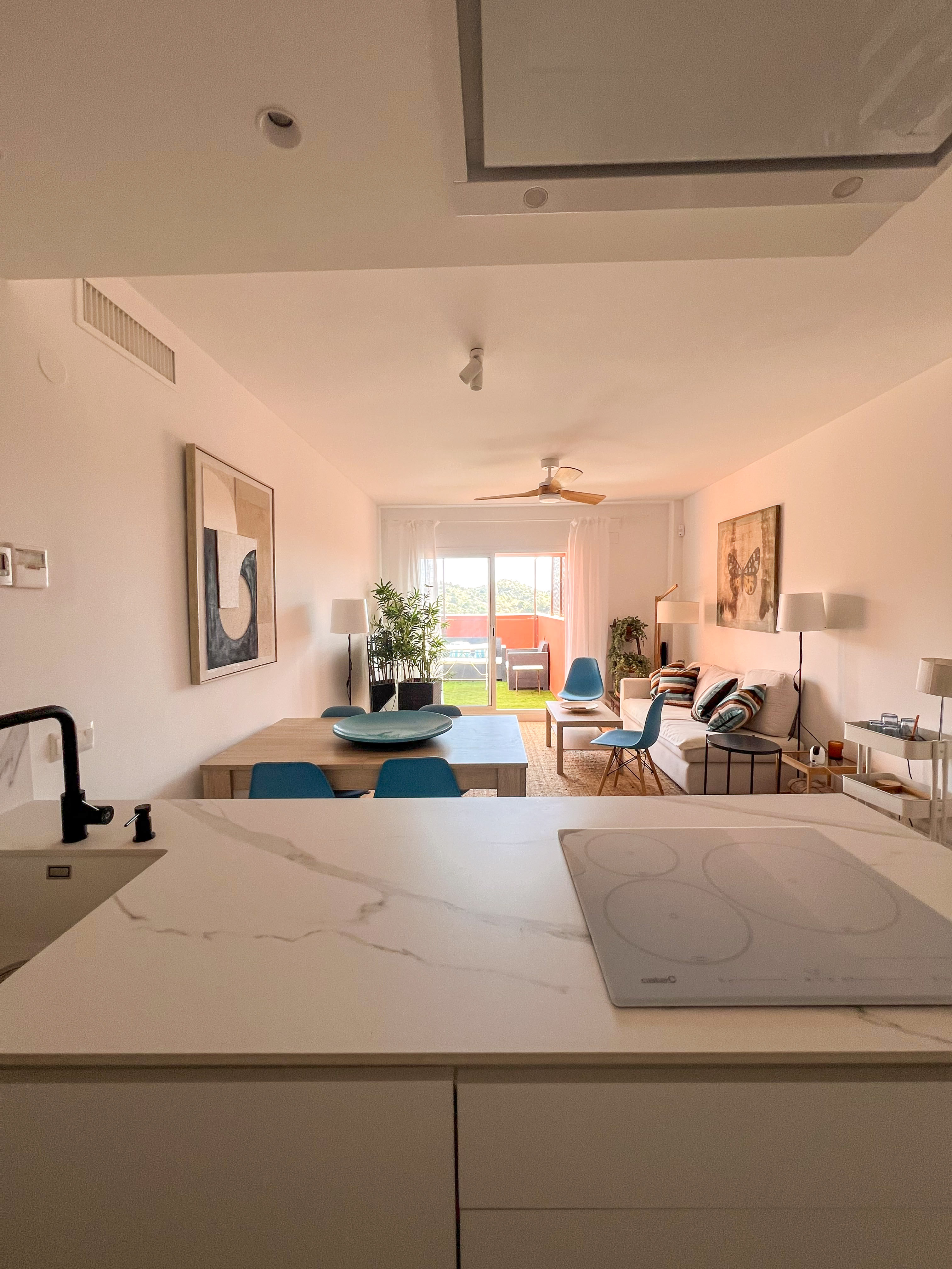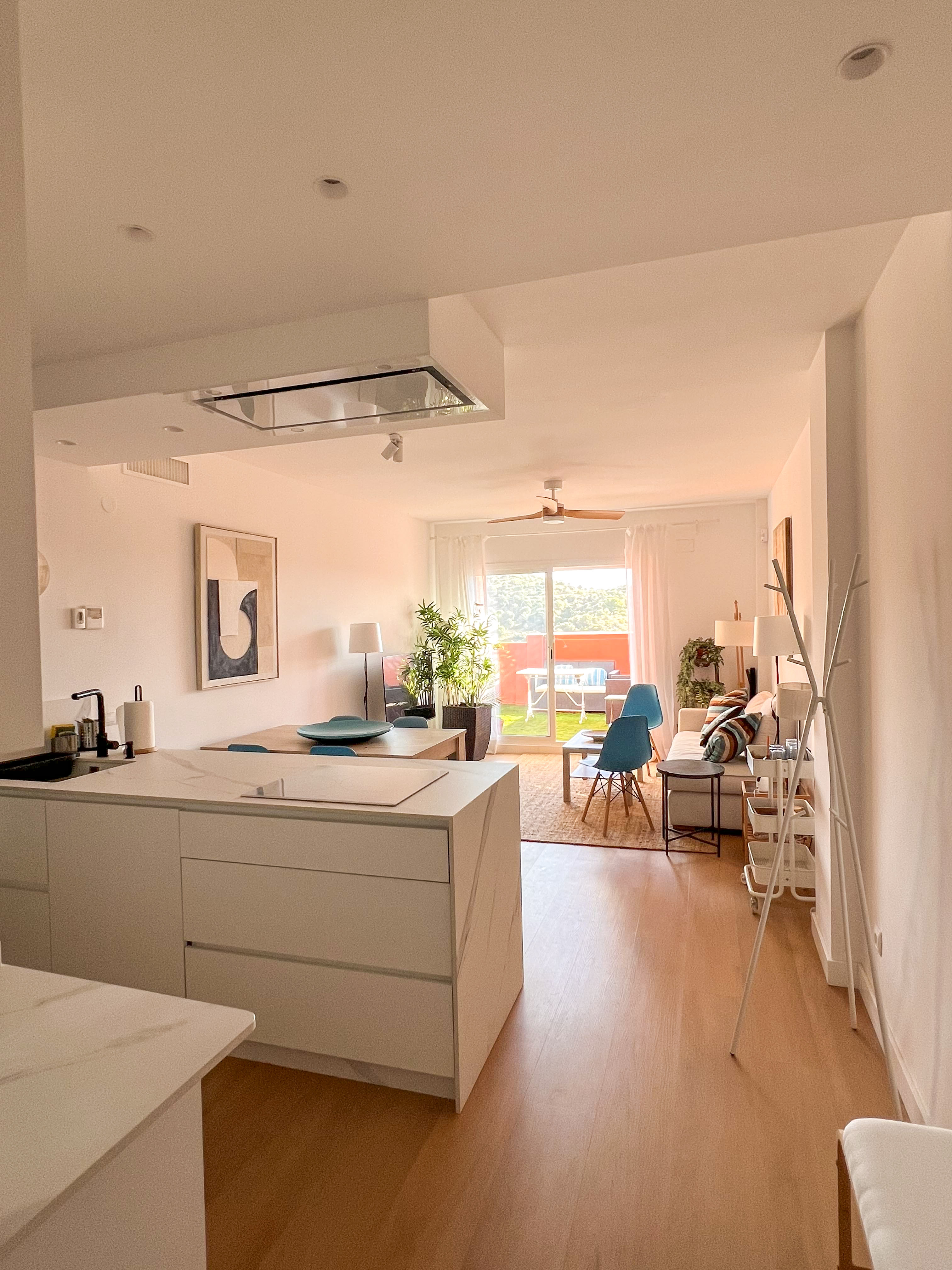 Reforma integral de apartamento en Cabopino, en la urbanización Reserva de Marbella, 112 m² construidos de vivienda, y m² de Terraza. Y con un solarium de 70 m² en la planta alta cuenta con un solarium de 70 m2.